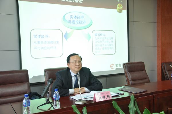 仪式后,吴晓辉行长做客2011年第1期“山东省应用金融理论与政策研究基地金融家论坛”,发表了题为“金融的制度属性与现代金融业的发展”的学术报告。报告中,吴晓辉行长从金融的概念、金融业的历史发展、金融企业与金融市场、金融业的监管、21世纪现代金融业发展趋势和现代金融研究的发展趋势六个方面做了详细阐述。他首先从金融的概念与金融业的历史发展着手,解释了金融的概念分类及金融业的飞速发展状况,重点分析了目前金融企业与金融市场的发展,金融企业可以从业务、收入、考评、风险四个角度进行分类,由此构成的金融市场具有融资功能、投资功能、价格发现、风险对冲四个主要功能。而政府对于金融业的监管主要通过拨备来消化预期损失、通过资本缓释非预期损失冲击 、宏观调控三方面。他提到21世纪现代金融以基于脱媒基础上的银行功能重构、基于环境变化基础上需求创造供给、基于信息技术基础上的经营模式革命为主要趋势发展,关于现代金融发展研究的方法也顺应金融发展趋势,从个体孤立演变到整体联系(行业、产业链、上下游,相关性),最终以立体发展(加入了时间因素)的方法为主。学术报告由经济学院常务副院长胡金焱教授主持,并对学术报告做了生动诠释和精彩点评。