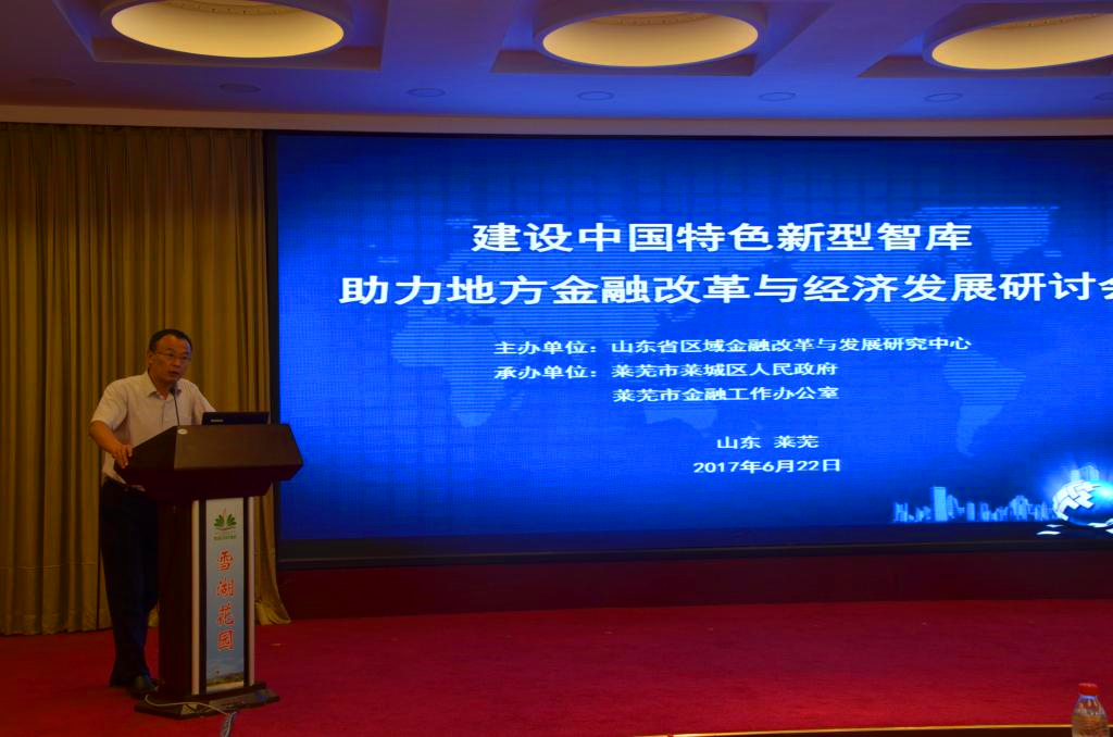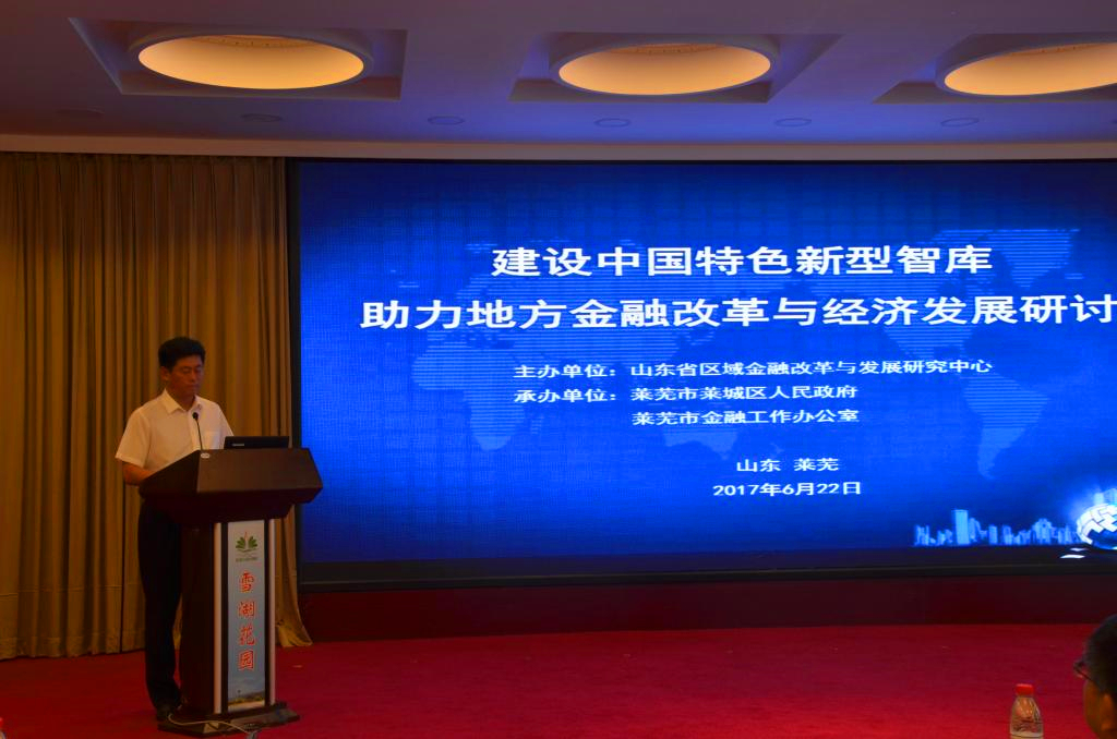 6月22日,“建设中国特色新型智库助力地方金融改革和经济发展研讨会”在莱芜举行。山东省委宣传部副巡视员刘兵,山东省金融工作办公室副主任初明锋,山东省区域金融改革与发展研究中心主任、山东大学副校长胡金焱,山东省社会科学规划管理办公室主任杜福,莱芜市常务副市长孟令兴出席研讨会。