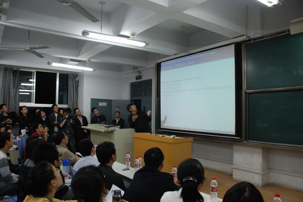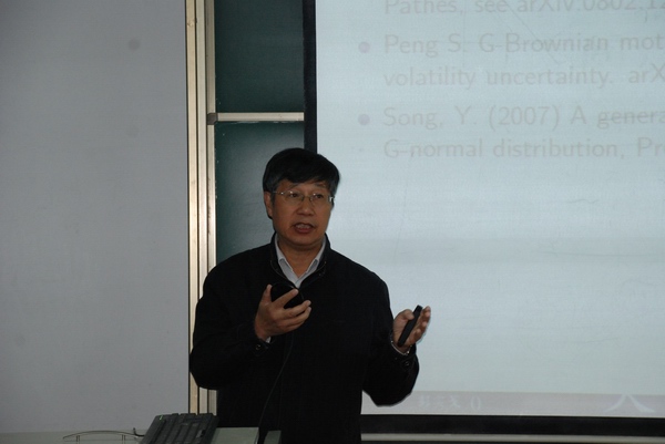 10月12日晚,中国科学院院士、经济学院院长彭实戈教授做客金融学家讲坛讲解“金融风险控制中的动态计算”,加州大学圣芭芭拉分校经济学终身教授、世界知名华人经济学家秦承忠,经济学院金融学系教师、部分研究生、本科生共计240余人聆听了此次学术报告,报告由经济学院常务副院长胡金焱教授主持。 彭实戈院士从美国金融危机讲起,首先阐明了风险管理的重要意义以及实际测度中的困难。他讲到,风险度量会是金融领域的第三次革命,也就是继马可维茨资产组合理论、布莱克-舒尔茨期权定价理论之后的第三个重大突破。